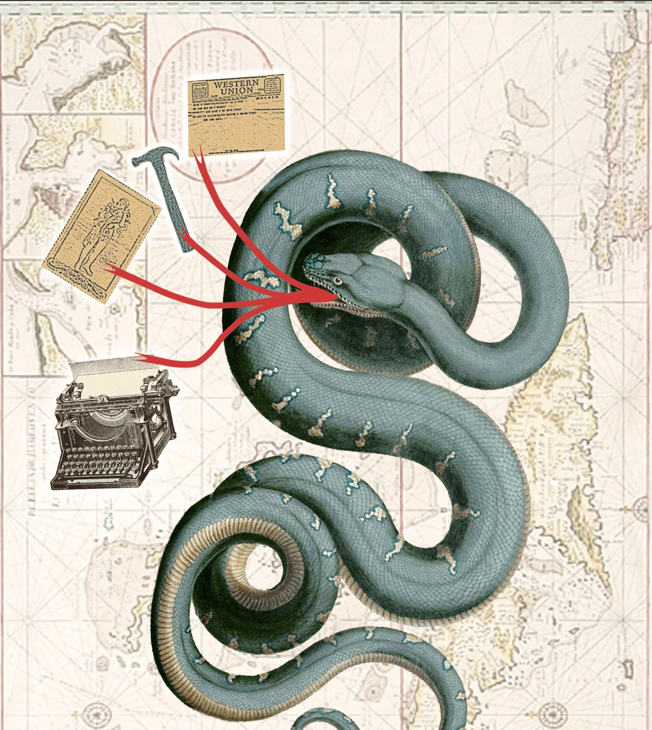Snake Telegram is a soft and vicious solo evening, which unravels from maneuvered folds into an operetta of savage and coarse dimensions. It is both mystery and surprise that arcs from coil to cry as its plucked and tarnished movements dance to cool, cool jazz. Or: dancey dance + that hammer + 7 windup toys + an out of line alphabet + cojones + non-dancey dance. Ssssstop. Ssssstop. Full Stop.